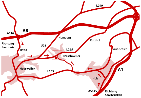 Anfahrt über Autobahn A1/E 422 (aus Richtung Saarbrücken):